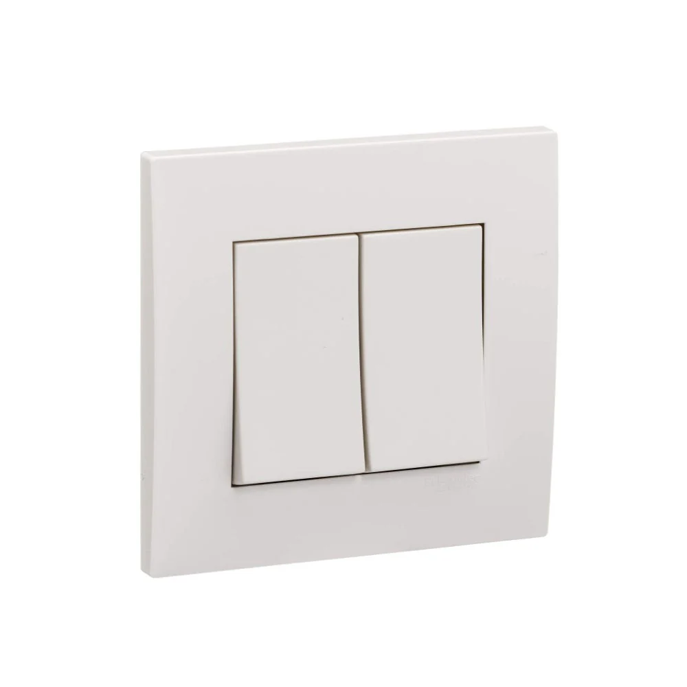 Made from high-quality polycarbonate, this switch offers excellent durability, impact resistance, and long-lasting performance. The 2-gang, 1-way configuration allows convenient control of two lighting circuits from a single location, making it practical for homes, offices, and commercial spaces.